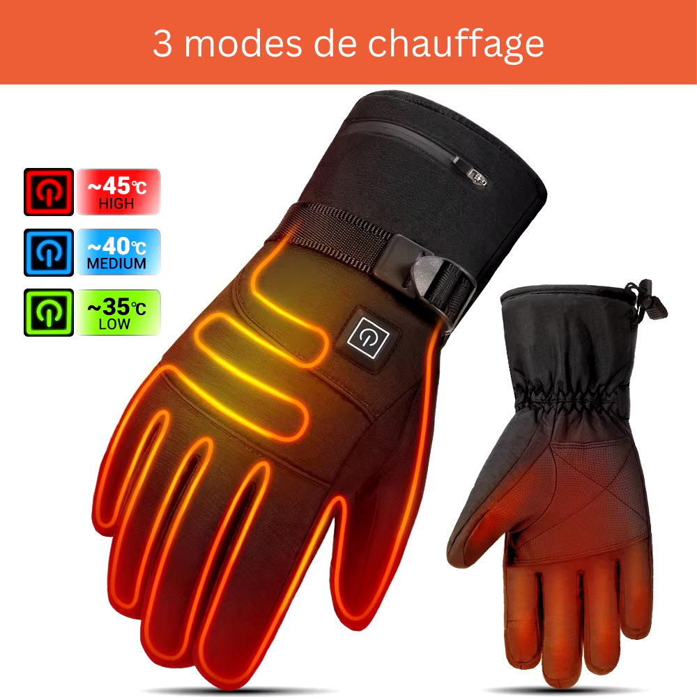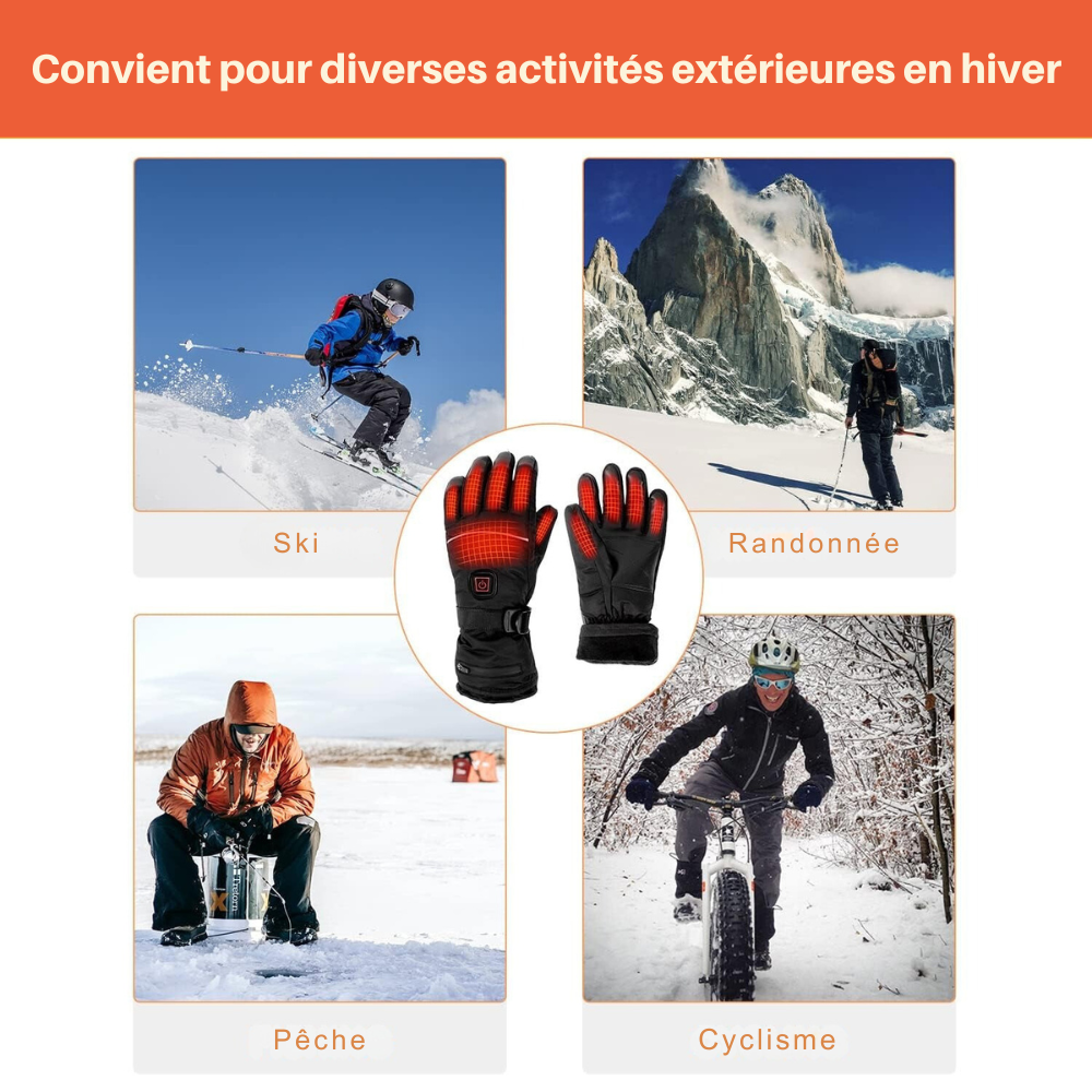 Ces gants chauffants sont ultra performants. Ils tiennent bien contre le vent et la neige. Idéal pour des activités comme le ski ou les balades en montagne.